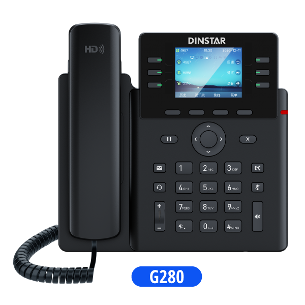 Dinstar G280,G280P & G280W adalah IP Phone profesional dengan layar warna 2.8 inci dan fitur lengkap untuk kebutuhan komunikasi bisnis modern. Perangkat ini mendukung hingga 6 akun SIP serta kualitas audio HD untuk memberikan komunikasi yang jernih dan stabil.